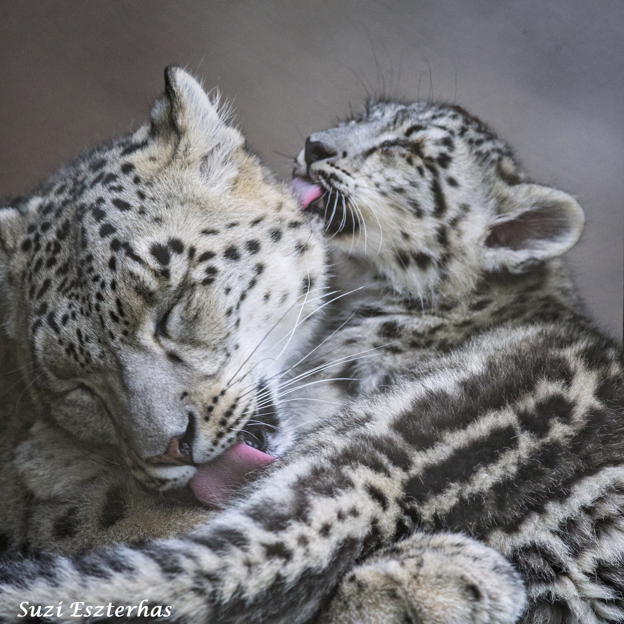 Fun facts about snow leopard reproduction: The snow leopard’s mating season is January to March, with births occurring from April to June, following a 90 to 105 day gestation period. Female snow leopards usually give birth to 2 or 3 cubs, with a rare occurrence of 4 to 5 cubs in a litter. The mother will keep the vulnerable cubs safe in a den in the rugged high mountains while she is nursing, leaving only to search and hunt for prey until the cubs are weaned and strong enough to join her to start learning how to hunt small mammals. The cubs will generally stay with their mother for 18 months, up to 2 years, before moving on to establish their own territory and becoming sexually mature. At this time, the mother will go back into estrus and start the cycle all over again.