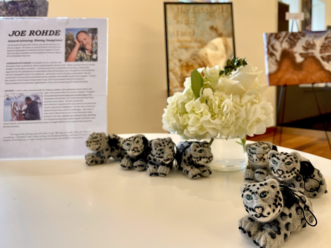 Snow leopard-themed tables were adorned with unique one-of-a-kind needle-felted wool snow leopards. The beautiful snow leopard felties are individually handcrafted by Indigenous women in the Peruvian Andes participating in The Spectacled Bear Conservation Societies (SBC). SLC is pleased and honored to partner with SBCās alternative livelihood program that creates sustainable economic opportunities for women living in critical spectacled bear habitat in northwestern Peru. Each purchase of a handmade snow leopard feltie supports community-led projects and conservation efforts on two continents to protect both iconic and vulnerable species, the spectacled bear and the snow leopard.