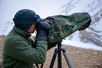 It is not easy to get around these mountain ranges in winter due to the cold (0 to -30ºC), the altitude (4000-5000 meters, 13000-16500 feet), and the poor conditions of the roads, accommodation, and food. But working together with local naturalists and trackers, we had the privilege of watching and photographing three different snow leopard specimens, sometimes for hours.